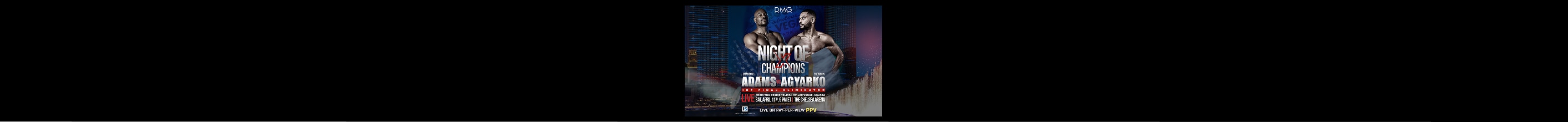 DMB Boxing's Night of Champions X is taking over Las Vegas - and It's BIG. Catch Brandom Adams take on Caoimhin Agyarko in an IBF Final Eliminator.
